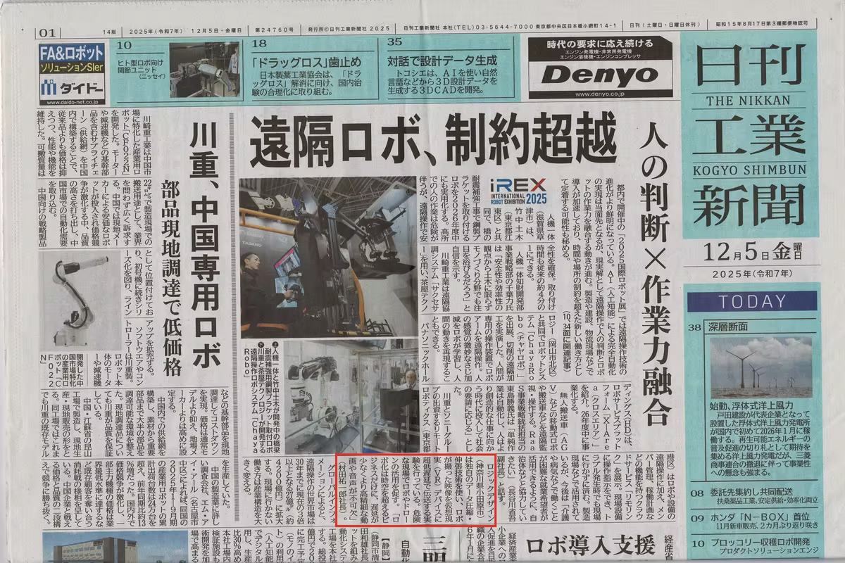 2025国際ロボット展|超低遅延映像伝送技術が日刊工業新聞(電子版・紙面)に掲載されました